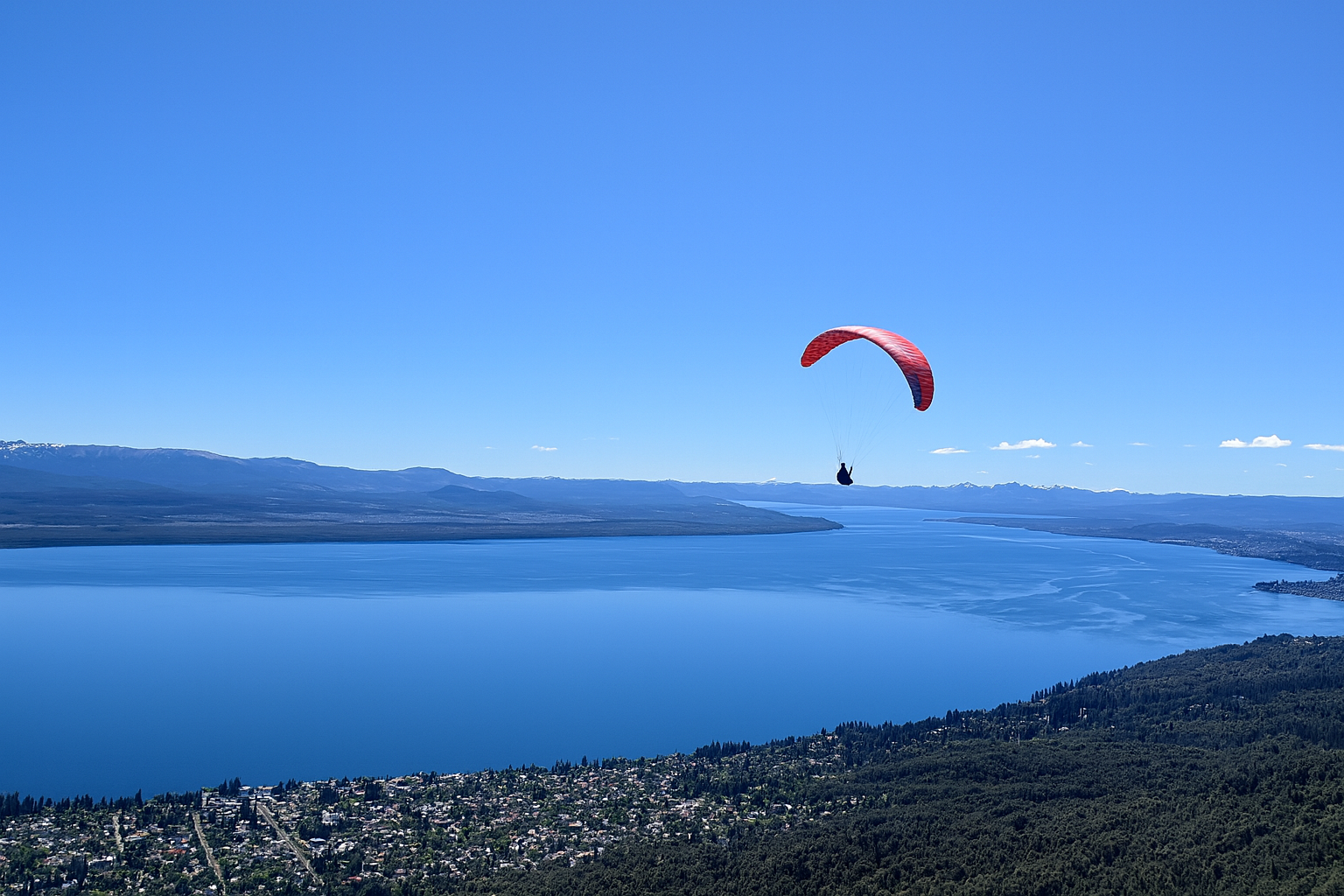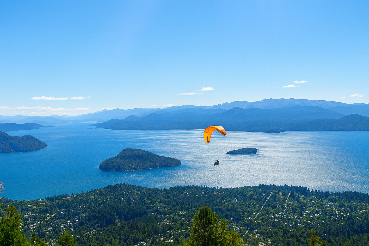 Despegamos desde la cima del Cerro Otto y, con apenas unos pasos, estarás flotando en el aire mientras disfrutás de vistas panorámicas únicas de montañas, lagos y bosques.